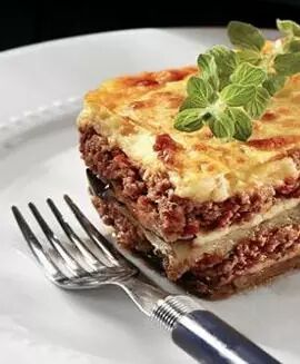 穆萨嘎是希腊最具有代表性的食物,将肉末、土豆和茄子以及最上面的一层香喷喷的奶酪叠加垒放,放入烤箱烘制而成。