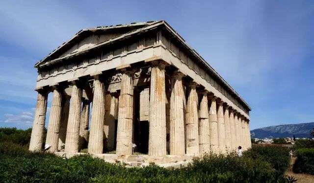 赫菲斯托斯神庙是希腊保存最好的古建筑物之一,里面供奉的是火与铸造之神赫菲斯托斯。神殿有34根圆柱子,屋顶周围雕刻有“赫拉克勒斯十二伟绩”中的九个故事,它的大名也许大家不熟悉,不过她老婆可是大大有名,就是那位断胳膊的维纳斯。大概因为火神是个跛子的原因,雅典残奥会的圣火就是在这里点燃的。