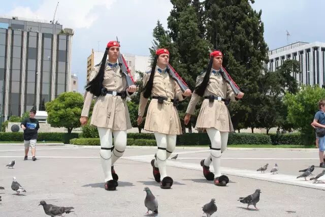 宪法广场是雅典的心脏地带,大理石地板铺成的广场上,散置着许多长椅,许多航空公司、银行、旅行社及咖啡店都集中于此,也常有民众在此散步、休憩、喂鸽子,这里最著名的景点就是位于国会大厦和宪法广场之间的无名战士纪念碑了。每到正点,这里便会上演一场精彩的卫兵换岗仪式,穿着古典的卫兵们以独特的步伐巡行在纪念碑前,吸引无数观光客们驻足观看。