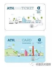 值得注意的是,2017年10月开始雅典推出了新型电子车票,该电子车票分为两类,第一类为单次使用票(ATH.ENA TICKET,下图白底票)售价与原先相同,市内公交仍为1.4欧元可使用90分钟,机场专线公交则另外收费。第二类则为长效票(ATH.ENA CARD,下图蓝底票),分为月票、季票、半年票及全年票。