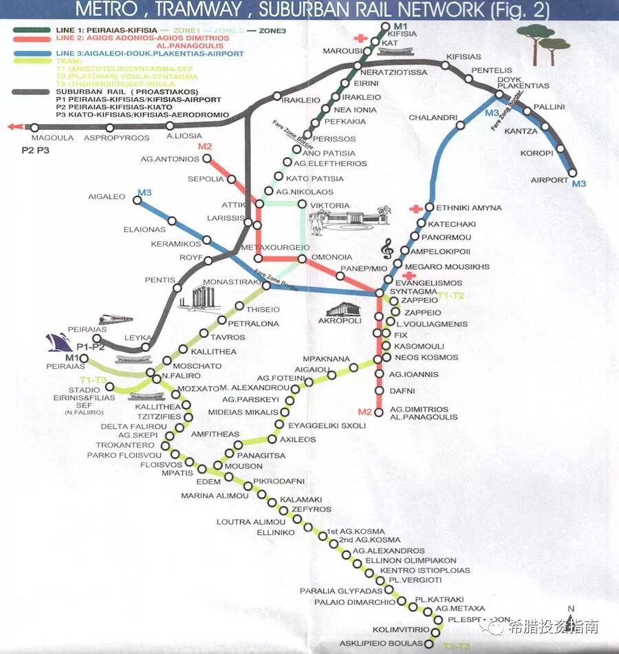 首都圈有3条地铁、3条有轨电车和2条郊区铁路组成,大部分区域到市中心(宪法广场)也就30分钟车程。雅典的公共交通票价与线路和距离无关,在70分钟内,无论你换乘何种公共交通工具,换乘几次,一律1.4欧元(约合人民币10.58元)。