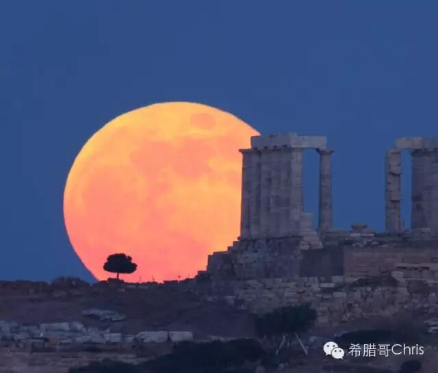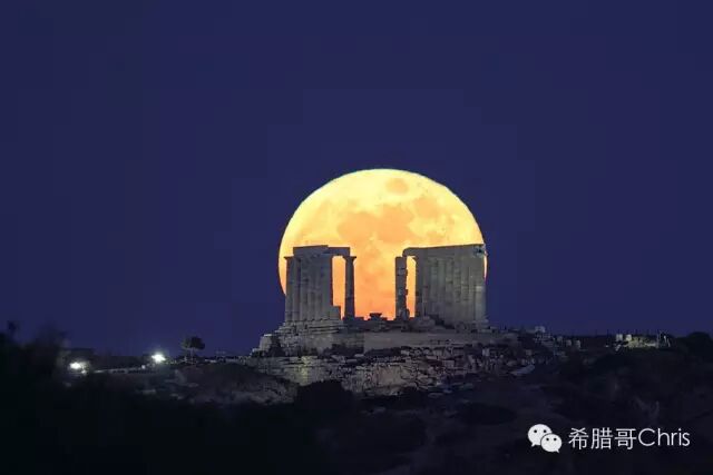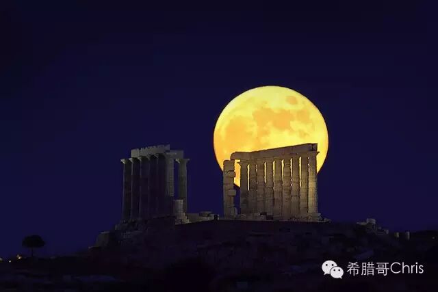 除了雅典卫城,雅典南部海岸的波塞冬神庙,也是赏月的好地方。波塞冬神庙高高矗立在苏尼翁海角,三面环绕着爱琴海,满月升起时,景色动人心魄。下面照片里的月亮并不是p上去的,因为透视的关系,月亮看起来就像科幻电影里的星球。
