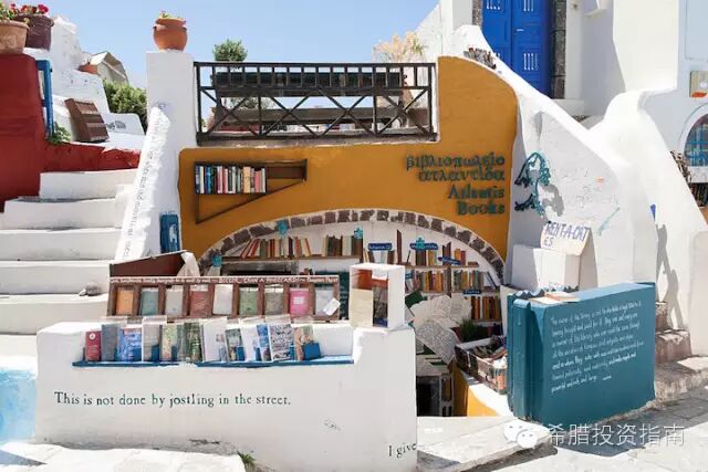 2002年,两位创始人在“世界上最浪漫岛屿”圣托里尼岛度假时,注意到岛上没有一家书店,喝了几口酒后,便起了兴致,想在这个岛上开家名为“亚特兰蒂斯”的书店。站在书店阳台,面前是一览无余的蓝天碧海,身后是古老的白色城堡,可俯视火山岛全景。书店时常组织话剧演出、放映露天电影,来访者累了也可以在书店提供的床铺上打个盹儿。