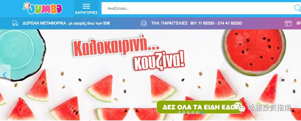 希腊的Jumbo与中国市场有着紧密的合作,这里几乎所有商品都是“中国制造”,这样大大促进了其商品价格的低廉。 在这里 广泛的品种和非常实惠的价格相结合是购物的理想组合,能让每位顾客都满意的感受到物美价廉。自200以来,Jumbo改变了希腊家庭的日常产品的消费方向,近期还创建电子商店jumbo.gr。