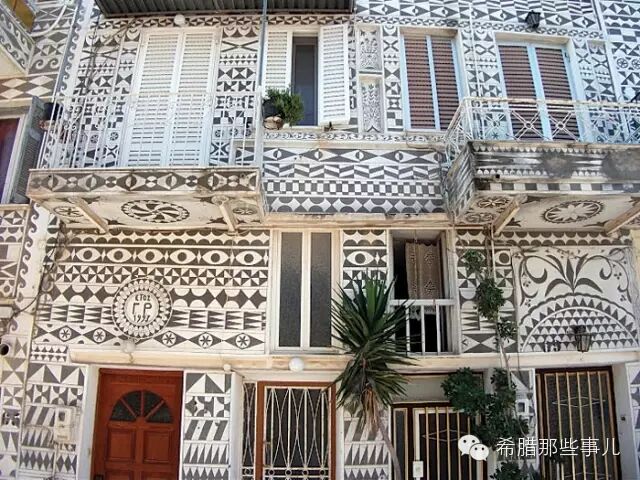 这个黑白相间的小镇,名字叫Pyrgi(Πυργι),中文音译为“皮尔奇” ,满街都是黑白几何图案的建筑物。皮尔奇镇位于爱琴海东部,距希腊第五大岛屿希俄斯(Chios,Χίος)约24公里。