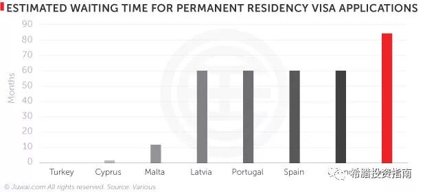 与欧洲其他国家相比,土耳其,塞浦路斯和马耳他的所需等待时间非常短, 相比之下,希腊 - 最便宜的黄金签证投资者签证计划之一 - 投资者则需等待近7年才能有资格申请国籍,而只要所购房产不出售,则希腊黄金签证一直有效。