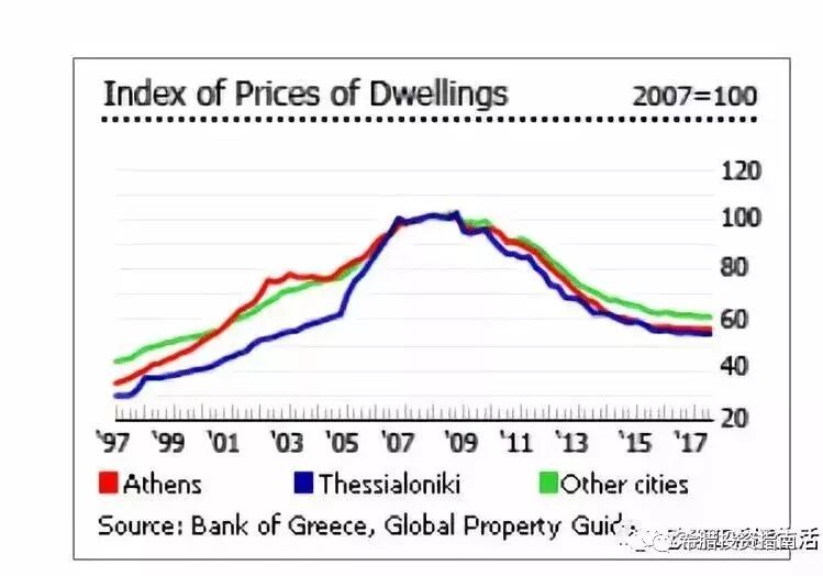 与2008年的高峰期相比,希腊住宅价格下降了42.8%(实际值为-45.9%)。