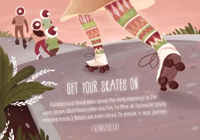 圣诞节前的一周,家人和亲友在清晨都会穿溜冰鞋去参加弥撒。一些道路还会被封锁,以保证人们的安全。