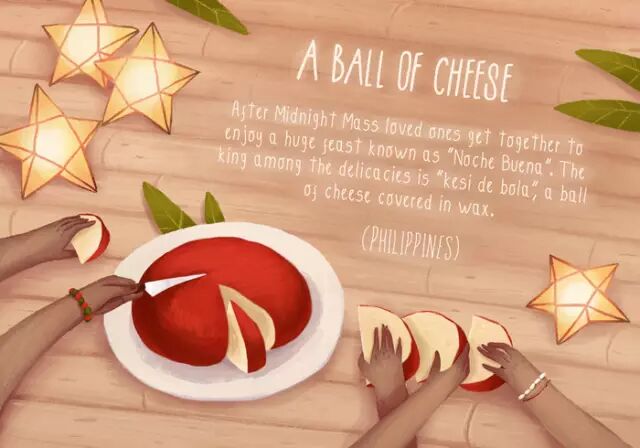 参加完午夜弥撒后,亲人们会享用一顿大餐,其中的重头戏就是用蜜蜡包裹的奶酪球。