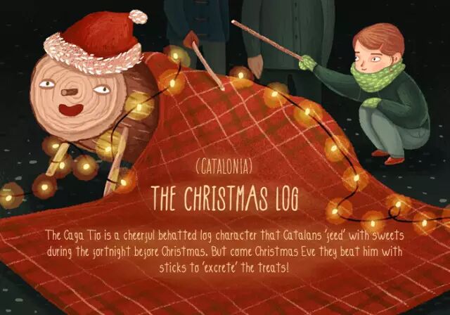 圣诞前的两星期,人们在戴着帽子的原木状“怪物”肚里面装满糖果,然后在圣诞前夜用棍棒敲打它,让它“拉”出糖果。