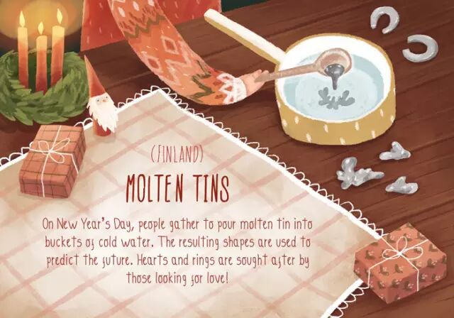 新年第一天,人们围聚一堂,将熔化的锡液倒入一桶冷水中,锡液在水中凝固成的形状便是未来的预言。