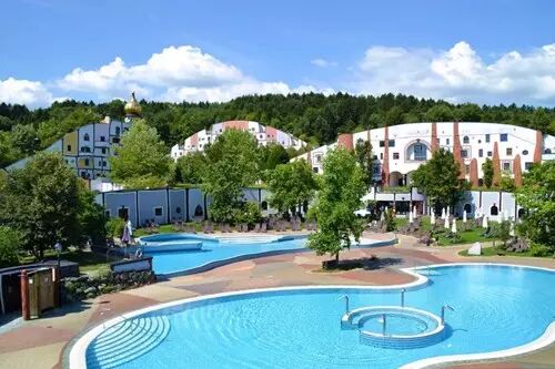 布鲁茂百水温泉位于奥地利最有名的温泉地区巴德布鲁茂,距格拉茨60公里,由著名建筑师,维也纳百水公寓的设计者,百水先生设计。童话般斑斓的色彩与不规则的曲线设计相映成趣。百水公寓只能观其表,而百水温泉是可以泡温泉享受与百水设计零接触!