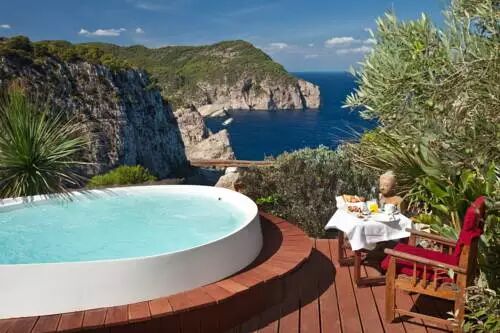 提到海景,怎么能不说圣托里尼?一望无际的湛蓝大海、悬崖上摇摇欲坠的城镇、错落有致的房屋和沁人心脾的蓝天白云,这里真是太完美了。阿尔迪套房酒店将一切美景尽揽,享有火山口和爱琴海的全景。其简约风格的套房设有带水力按摩设施的小型私人室外温水游泳池,并且所有套房均自带露台和日光浴床,可通往小型游泳池。