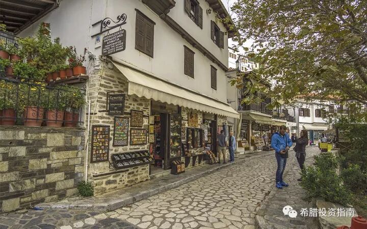 这里的村庄质朴,风景如诗如画,村民友善真诚,村中到处都是由鹅卵石铺成的街道及大型中央广场,广场上耸立着千百年风霜洗礼的古老梧桐,在你头顶展开一片巨大却充满童话意味的树顶。沿街店铺出售当地特产的果酱,糖果和希腊传统美食。