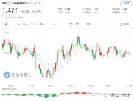 西班牙10年期国债收益率也较一年前有所下降,去年3月曾逼近1.9%,本周五收于1.47%左右。